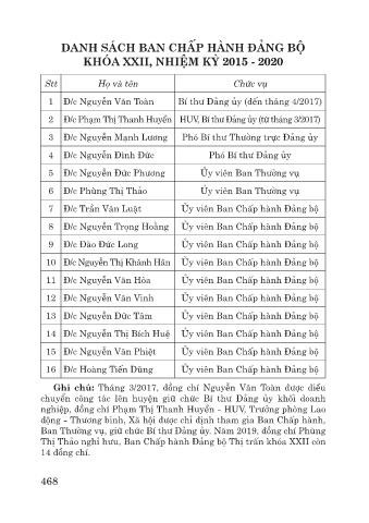 Ghi chú: Tháng 3/2017, đồng chí Nguyễn Văn Toàn được điều