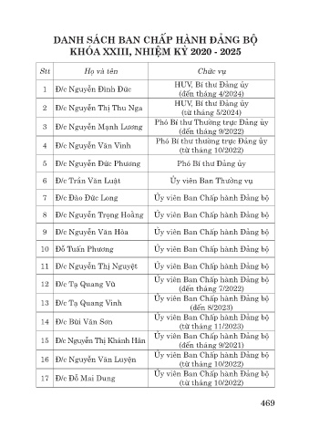 DANH SÁCH BAN CHẤP HÀNH ĐẢNG BỘ