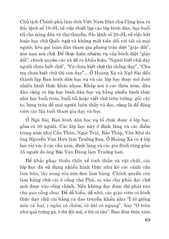 Ở Ngô Sài, Ban bình dân học vụ tổ chức được 4 lớp học,
