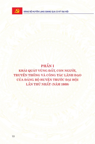 ÑAÛNG BOÄ HUYEÄN LAÏNG GIANG QUA 22 KYØ ÑAÏI HOÄI PHẦN I KHÁI QUÁT VÙNG ĐẤT, CON NGƯỜI, TRUYỀN THỐNG VÀ CÔNG TÁC LÃNH ĐẠO CỦA ĐẢNG BỘ HUYỆN TRƯỚC ĐẠI HỘI LẦN THỨ NHẤT (NĂM 1959) 12