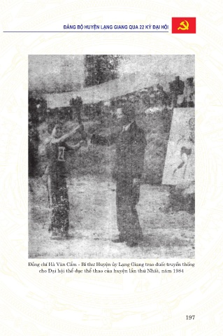 ÑAÛNG BOÄ HUYEÄN LAÏNG GIANG QUA 22 KYØ ÑAÏI HOÄI Đồng chí Hà Văn Cẩm - Bí thư Huyện ủy Lạng Giang trao đuốc truyền thống cho Đại hội thể dục thể thao của huyện lần thứ Nhất, năm 1984 197