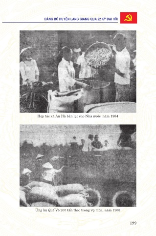 ÑAÛNG BOÄ HUYEÄN LAÏNG GIANG QUA 22 KYØ ÑAÏI HOÄI Hợp tác xã An Hà bán lạc cho Nhà nước, năm 1984 Ủng hộ Quế Võ 200 tấn thóc trong vụ mùa, năm 1985 199