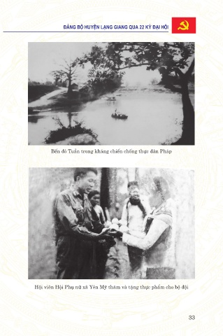 ÑAÛNG BOÄ HUYEÄN LAÏNG GIANG QUA 22 KYØ ÑAÏI HOÄI Bến đò Tuần trong kháng chiến chống thực dân Pháp Hội viên Hội Phụ nữ xã Yên Mỹ thăm và tặng thực phẩm cho bộ đội 33