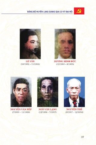 ÑAÛNG BOÄ HUYEÄN LAÏNG GIANG QUA 22 KYØ ÑAÏI HOÄI LÊ VÂN DƯƠNG MINH ĐỨC (10/1952 - 11/1953) (12/1953 - 6/1955) NGUYỄN VĂN NẾP NGÔ VĂN LẠNG NGUYỄN THỂ (7/1955 - 11/1956) (12/1956 - 7/1957) (8/1957 - 12/1958) 37