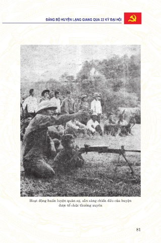 ÑAÛNG BOÄ HUYEÄN LAÏNG GIANG QUA 22 KYØ ÑAÏI HOÄI Hoạt động huấn luyện quân sự, sẵn sàng chiến đấu của huyện được tổ chức thường xuyên 81
