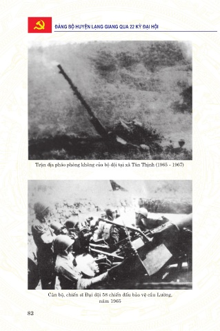 ÑAÛNG BOÄ HUYEÄN LAÏNG GIANG QUA 22 KYØ ÑAÏI HOÄI Trận địa pháo phòng không của bộ đội tại xã Tân Thịnh (1965 - 1967) Cán bộ, chiến sĩ Đại đội 58 chiến đấu bảo vệ cầu Lường, năm 1965 82