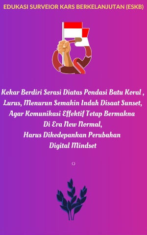 EDUKASI SURVEIOR KARS BERKELANJUTAN (ESKB) Kekar Berdiri Serasi Diatas Pondasi Batu Koral , Lurus, Menurun Semakin Indah Disaat Sunset, Agar Komunikasi Effektif Tetap Bermakna Di Era New Normal, Harus Dikedepankan Perubahan Digital Mindset