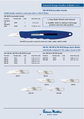 \u0020\u0020\u0053\u004D\u0020\u0030\u0052\u0020\u0049\u0020\u0049\u0020\u0052\u0065\u0074\u0072\u0061\u0063\u0074\u0061\u0062\u006C\u0065\u0020\u0048\u0061\u006E\u0064\u006C\u0065\u0020\u0050\u0043\u0041\u0042\u0053\u0020\u0048\u0061\u006E\u0064\u006C\u0065\u002C\u0020\u0073\u0065\u0061\u006C\u0065\u0064\u0020\u0069\u006E\u0020\u0061\u0020\u0063\u006C\u0061\u006D\u0020\u0070\u0061\u0063\u006B\u0020\u0077\u0069\u0074\u0068\u0020\u0032\u0020\u0078\u0020\u0053\u004D\u0020\u0030\u0031\u0020\u0042\u006C\u0061\u0064\u0065\u0073\u000A\u0020\u0020\u0020\u0020\u0053\u004D\u0020\u0030\u0052\u0020\u0049\u0020\u0049\u0020\u0072\u0065\u0074\u0072\u0061\u0063\u0074\u0061\u0062\u006C\u0065\u0020\u0068\u0061\u006E\u0064\u006C\u0065\u0020\u0050\u0072\u006F\u0064\u0075\u0063\u0074\u0020\u0050\u0072\u006F\u0064\u0075\u0063\u0074\u0020\u004E\u006F\u0020\u0055\u006E\u0069\u0074\u000A\u0020\u0020\u0053\u004D\u0020\u0030\u0052\u0020\u0049\u0049\u000A\u0073\u0065\u0074\u0020\u0034\u0033\u0030\u0037\u0020\u0053\u004D\u0020\u0030\u0052\u0020\u0049\u0049\u000A\u0062\u0075\u006C\u006B\u0020\u0034\u0033\u0030\u0038\u000A\u0050\u0061\u0063\u006B\u0020\u0050\u0072\u0069\u0063\u0065\u0020\u0028\u00A3\u0029\u0020\u0032\u002E\u0031\u0033\u0020\u0065\u0061\u0063\u0068\u000A\u0031\u0037\u002E\u0037\u0030\u0020\u0070\u0065\u0072\u0020\u0062\u006F\u0078\u000A\u0031\u002E\u0020\u0045\u0061\u0073\u0079\u0020\u0062\u006C\u0061\u0064\u0065\u0020\u0066\u0069\u0074\u006D\u0065\u006E\u0074\u0020\u0061\u006E\u0064\u0020\u0072\u0065\u006D\u006F\u0076\u0061\u006C\u002E\u000A\u0032\u002E\u0020\u0041\u0075\u0064\u0069\u0062\u006C\u0065\u0020\u0063\u006C\u0069\u0063\u006B\u0073\u0020\u0074\u006F\u0020\u0069\u006E\u0064\u0069\u0063\u0061\u0074\u0065\u0020\u006D\u0069\u0064\u002D\u0075\u0073\u0061\u0067\u0065\u0020\u0070\u006F\u0073\u0069\u0074\u0069\u006F\u006E\u0020\u0061\u006E\u0064\u0020\u0072\u0065\u0061\u0072\u0020\u0073\u0061\u0066\u0065\u0020\u0070\u006F\u0073\u0069\u0074\u0069\u006F\u006E\u000A\u0020\u0020\u0053\u004D\u0020\u0030\u0052\u0020\u0049\u0020\u0049\u0020\u0072\u0065\u0074\u0072\u0061\u0063\u0074\u0061\u0062\u006C\u0065\u0020\u0068\u0061\u006E\u0064\u006C\u0065\u0020\u0066\u0069\u0074\u0073\u0020\u0062\u006C\u0061\u0064\u0065\u0020\u004E\u006F\u2019\u0073\u0020\u0053\u004D\u0030\u0031\u002C\u0020\u0053\u004D\u0030\u0032\u002C\u0020\u0053\u004D\u0030\u0033\u0020\u0026\u0020\u0053\u004D\u0030\u0034\u000A\u0031\u0020\u0031\u0030\u000A\u0020\u0020\u0020\u0020\u0020\u0020\u0020\u0053\u004D\u0020\u0030\u0030\u002C\u0020\u0053\u004D\u0020\u0030\u0052\u0020\u0026\u0020\u0053\u004D\u0020\u0030\u0052\u0020\u0049\u0049\u0020\u0052\u0061\u006E\u0067\u0065\u0020\u0053\u0070\u0061\u0072\u0065\u0020\u0042\u006C\u0061\u0064\u0065\u0073\u0020\u0049\u006E\u0064\u0069\u0076\u0069\u0064\u0075\u0061\u006C\u006C\u0079\u0020\u0077\u0072\u0061\u0070\u0070\u0065\u0064\u0020\u0069\u006E\u0020\u0056\u002E\u0050\u002E\u0049\u002E\u0020\u0070\u0061\u0070\u0065\u0072\u002C\u0020\u0062\u006F\u0078\u0065\u0064\u0020\u0069\u006E\u0020\u0035\u0030\u2019\u0073\u000A\u0020\u0020\u0046\u0069\u0074\u0073\u0020\u0053\u004D\u0020\u0030\u0030\u002C\u0020\u0053\u004D\u0020\u0030\u0052\u0020\u0026\u0020\u0053\u004D\u0020\u0030\u0052\u0020\u0049\u0049\u0020\u0068\u0061\u006E\u0064\u006C\u0065\u000A\u0046\u0069\u0074\u0073\u0020\u0053\u004D\u0020\u0030\u0030\u0020\u0026\u0020\u0053\u004D\u0020\u0030\u0052\u0020\u0068\u0061\u006E\u0064\u006C\u0065\u000A\u0020\u0020\u0050\u0072\u006F\u0064\u0075\u0063\u0074\u000A\u0053\u004D\u0020\u0030\u0031\u0020\u0053\u004D\u0020\u0030\u0032\u0020\u0053\u004D\u0020\u0030\u0033\u0020\u0053\u004D\u0020\u0030\u0034\u000A\u0050\u0072\u006F\u0064\u0075\u0063\u0074\u0020\u004E\u006F\u0020\u0055\u006E\u0069\u0074\u0020\u0034\u0032\u0031\u0031\u0020\u0035\u0030\u000A\u0034\u0032\u0031\u0032\u0020\u0035\u0030\u0020\u0034\u0032\u0031\u0033\u0020\u0035\u0030\u0020\u0034\u0032\u0031\u0034\u0020\u0035\u0030\u000A\u0053\u004D\u0020\u0030\u0031\u000A\u0050\u0061\u0063\u006B\u0020\u0050\u0072\u0069\u0063\u0065\u0020\u0028\u00A3\u0029\u0020\u0033\u002E\u0031\u0036\u0020\u0070\u0065\u0072\u0020\u0062\u006F\u0078\u000A\u0033\u002E\u0036\u0035\u0020\u0070\u0065\u0072\u0020\u0062\u006F\u0078\u0020\u0033\u002E\u0036\u0035\u0020\u0070\u0065\u0072\u0020\u0062\u006F\u0078\u0020\u0035\u002E\u0035\u0032\u0020\u0070\u0065\u0072\u0020\u0062\u006F\u0078\u000A\u0050\u0072\u006F\u0064\u0075\u0063\u0074\u000A\u0053\u004D\u0020\u0030\u0031\u0042\u0020\u0053\u004D\u0020\u0030\u0033\u0042\u000A\u0053\u004D\u0020\u0030\u0032\u000A\u0053\u004D\u0020\u0030\u0033\u000A\u0050\u0072\u006F\u0064\u0075\u0063\u0074\u0020\u004E\u006F\u0020\u0055\u006E\u0069\u0074\u0020\u0034\u0032\u0035\u0032\u0020\u0035\u0030\u000A\u0034\u0032\u0035\u0033\u0020\u0035\u0030\u000A\u0050\u0061\u0063\u006B\u0020\u0050\u0072\u0069\u0063\u0065\u0020\u0028\u00A3\u0029\u0020\u0033\u002E\u0036\u0038\u0020\u0070\u0065\u0072\u0020\u0062\u006F\u0078\u000A\u0033\u002E\u0038\u0037\u0020\u0070\u0065\u0072\u0020\u0062\u006F\u0078\u000A\u0020\u0020\u0020\u0020\u0020\u0053\u004D\u0020\u0030\u0034\u000A\u0020\u0020\u0053\u004D\u0020\u0030\u0031\u0042\u000A\u0053\u004D\u0020\u0030\u0033\u0042\u000A\u0020\u0020\u0020\u0020\u0020\u0032\u0039\u000A\u0053\u0068\u0065\u0066\u0066\u0069\u0065\u006C\u0064\u0020\u002D\u0020\u0045\u006E\u0067\u006C\u0061\u006E\u0064\u000A\u0049\u006E\u0064\u0075\u0073\u0074\u0072\u0069\u0061\u006C\u0020\u0052\u0061\u006E\u0067\u0065\u0020\u0048\u0061\u006E\u0064\u006C\u0065\u0073\u0020\u0026\u0020\u0042\u006C\u0061\u0064\u0065\u0073\u0020\u0063\u006F\u006E\u0074\u002E\u000A