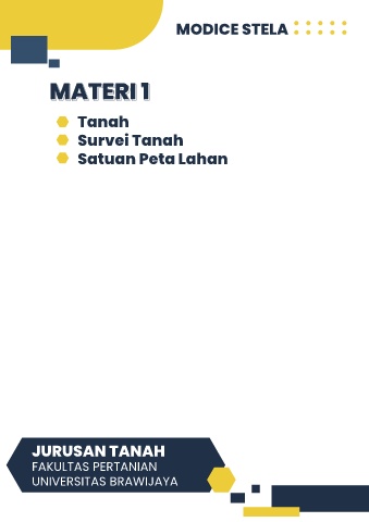 MODICE STELA MATERI 1 Tanah Survei Tanah Satuan Peta Lahan JURUSAN TANAH FAKULTAS PERTANIAN UNIVERSITAS BRAWIJAYA