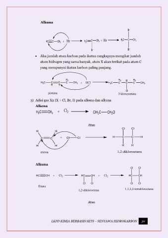 3) Adisi gas X2 (X = Cl, Br, I) pada alkena dan alkuna