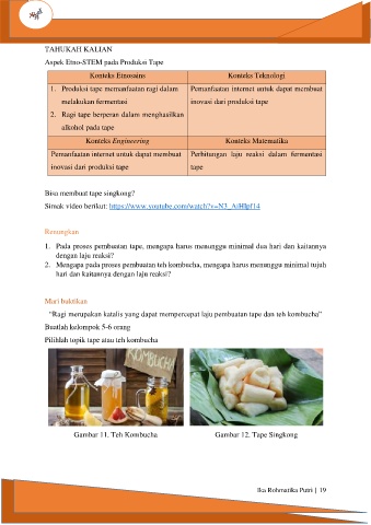 “Ragi merupakan katalis yang dapat mempercepat laju pembuatan tape dan teh kombucha”