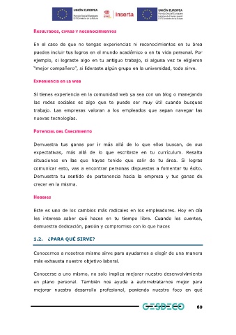 ejemplo, si lograste algo en tu antiguo trabajo, si alguna vez te eligieron
