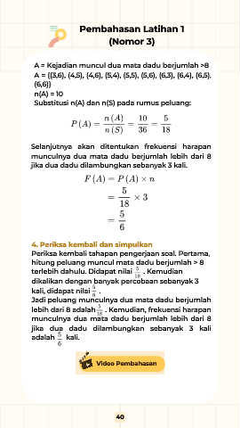 A = Kejadian muncul dua mata dadu berjumlah >8