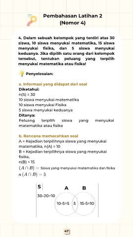 siswa, 10 siswa menyukai matematika, 15 siswa