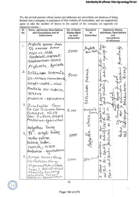 Submitted by M/s,Pioneer Holon Agroecology Pvt Ltd
