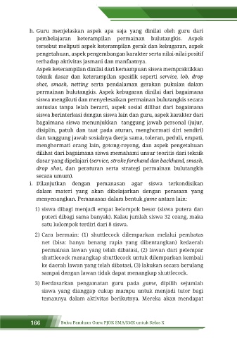 pembelajaran keterampilan permainan bulutangkis. Aspek