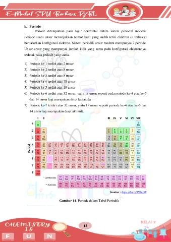 6) Periode ke-6 terdiri atas 32 unsur, yaitu 18 unsur seperti pada periode ke-4 atau ke-5