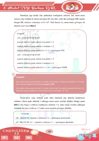 Jika jumlah elektron pada sub kulit d terakhir dan sub kulit s terdekat berjumlah lebih dari 10,