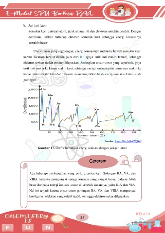 Gambar 17. Grafik hubungan energi ionisasi dengan jari-jari atom