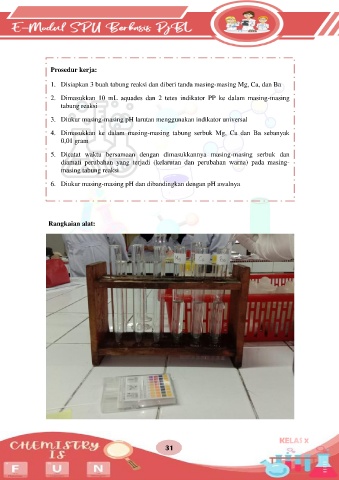 1. Disiapkan 3 buah tabung reaksi dan diberi tanda masing-masing Mg, Ca, dan Ba
