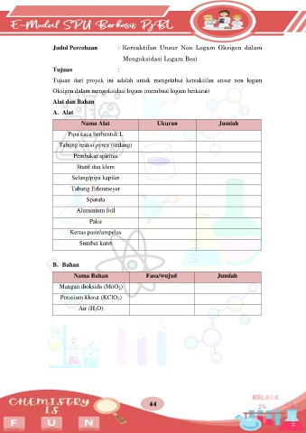 Tujuan dari proyek ini adalah untuk mengetahui kereaktifan unsur non logam