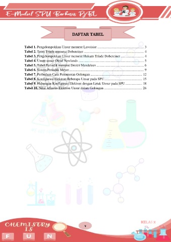 Tabel 8. Konfigurasi Elektron Beberapa Unsur pada SPU ............................................ 15