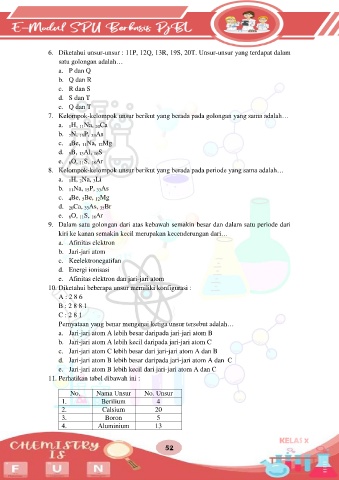 6. Diketahui unsur-unsur : 11P, 12Q, 13R, 19S, 20T. Unsur-unsur yang terdapat dalam