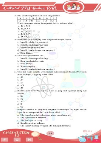 18. Data keelektronegatifan unsur-unsur sebagai berikut :
