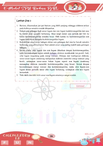 4. Secara kimia, sifat logam dan non logam dikaitkan dengan keelektronegatifan,