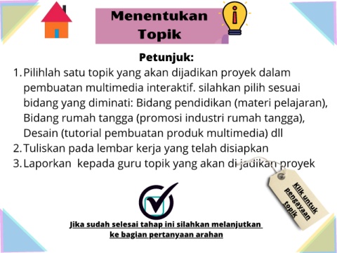 1. Pilihlah satu topik yang akan dijadikan proyek dalam