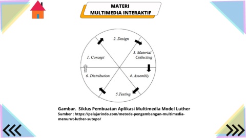 MATERI MULTIMEDIA INTERAKTIF Gambar. Siklus Pembuatan Aplikasi Multimedia Model Luther Sumber : https://pelajarindo.com/metode-pengembangan-multimedia- menurut-luther-sutopo/