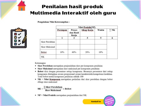 Penilaian hasil produk Multimedia Interaktif oleh guru Pertemuan minggu Kedua Kembali ke 13 x 45'