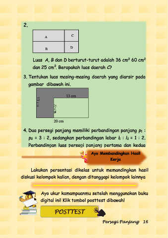 Luas A, B dan D berturut-turut adalah 36 cm 60 cm