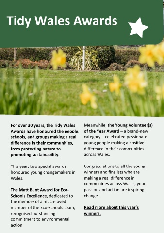 For over 30 years, the Tidy Wales Meanwhile, the Young Volunteer(s)