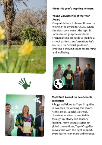 For over 30 years, the Tidy Wales Meanwhile, the Young Volunteer(s)
