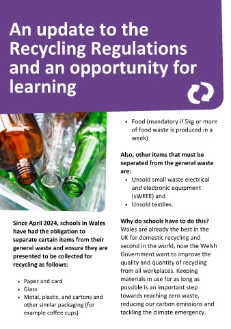 Since April 2024, schools in Wales Why do schools have to do this? become an opportunity for learners to help them recycle