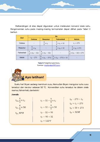 Pengonversian suhu pada masing-masing termometer dapat dilihat pada Tabel 1.1