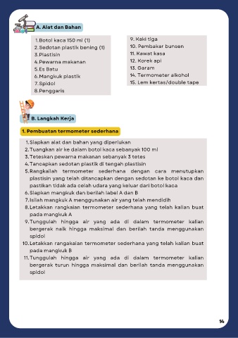 6. Mangkuk plastik 14. Termometer alkohol