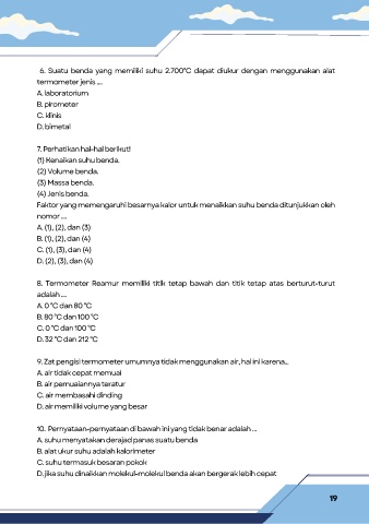 9. Zat pengisi termometer umumnya tidak menggunakan air, hal ini karena...