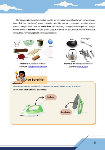 Menurut kamu, setrika itu termasuk konduktor atau isolator?