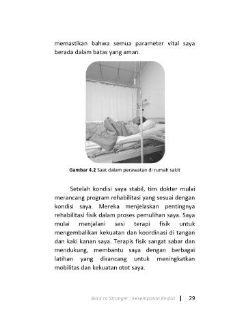 rehabilitasi fisik dalam proses pemulihan saya. Saya