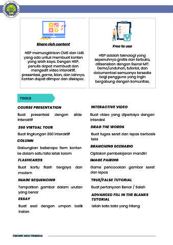 yang ada untuk membuat konten                       H5P adalah teknologi yang