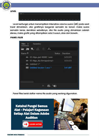 Panel files berisi daftar nama file audio yang sedang digunakan.