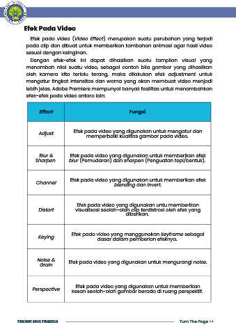 Efek pada video (Video Effect) merupakan suatu perubahan yang terjadi