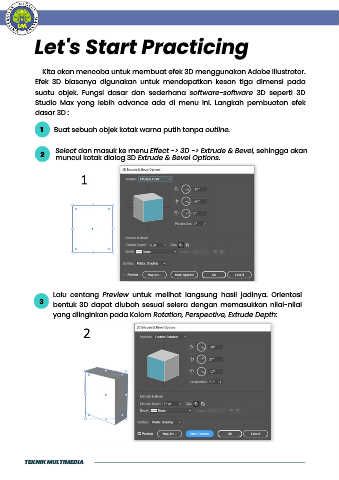 2 muncul kotak dialog 3D Extrude & Bevel Options.