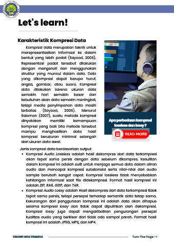 Kompresi Audio Lossy adalah Hasil dekompres dari data terkompresi tidak
