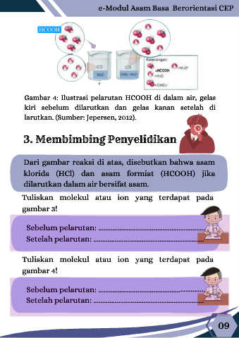 Gambar 4: Ilustrasi pelarutan HCOOH di dalam air, gelas