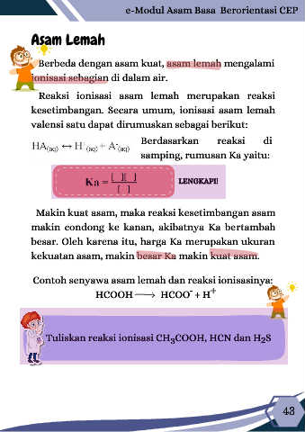 kesetimbangan. Secara umum, ionisasi asam lemah