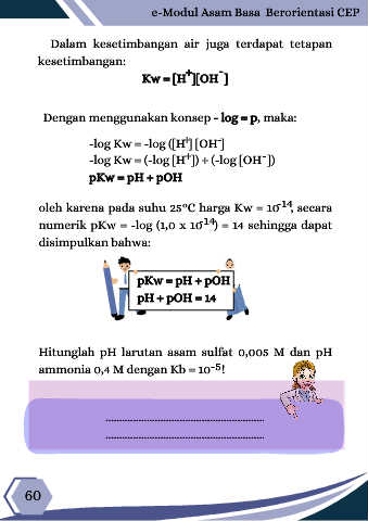 numerik pKw = -log (1,0 x 10 ) = 14 sehingga dapat