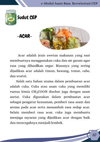 adalah cuka. Cuka atau asam cuka yang memiliki